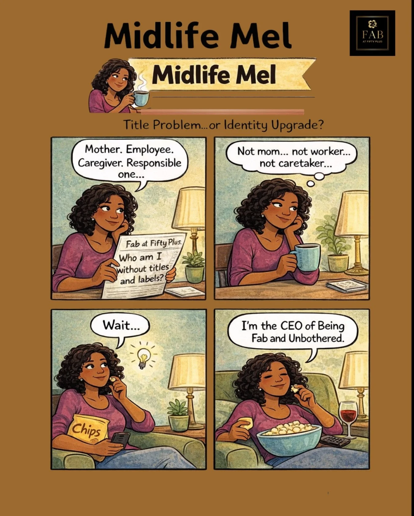 Say hello to Midlife Mel—51, fabulous, and fumbling through the chaos of midlife like the rest of us. She’s single, sarcastic, perimenopausal, and forever finding herself in situations that toe the line between “girl, same” and “make it stop!” Follow Mel’s shenanigans every week right here on Fab at Fifty Plus.